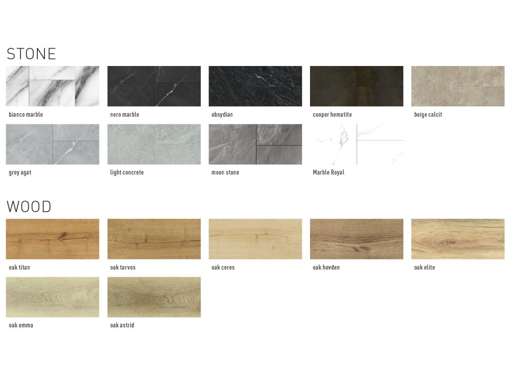Vybírat můžete z atraktivních dekorů dřeva, kamene, mramoru nebo betonu.